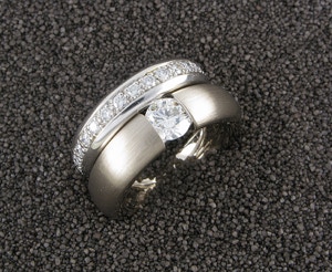 Damenring in Weissgold 750, Kunden-Diamantnavette