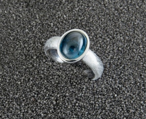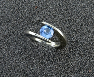 Damenring in Weissgold 750, hellblauer Saphir (Kundenstein)
