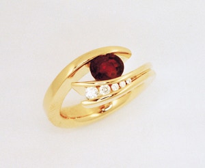 "Swing" Damenring, Gelbgold 750, Rubin im Brillantschliff 0,34 ct.